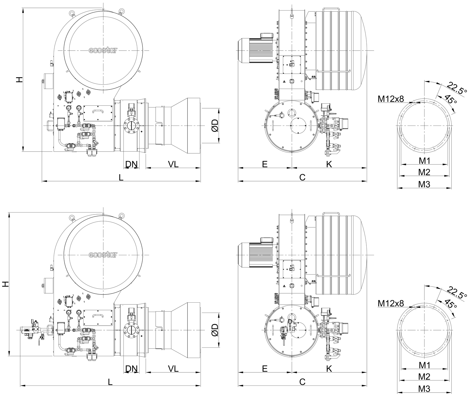 | * | ØD | L | C | K | E | H | ØM1 | ØM2 | ØM3 | VL | DN |