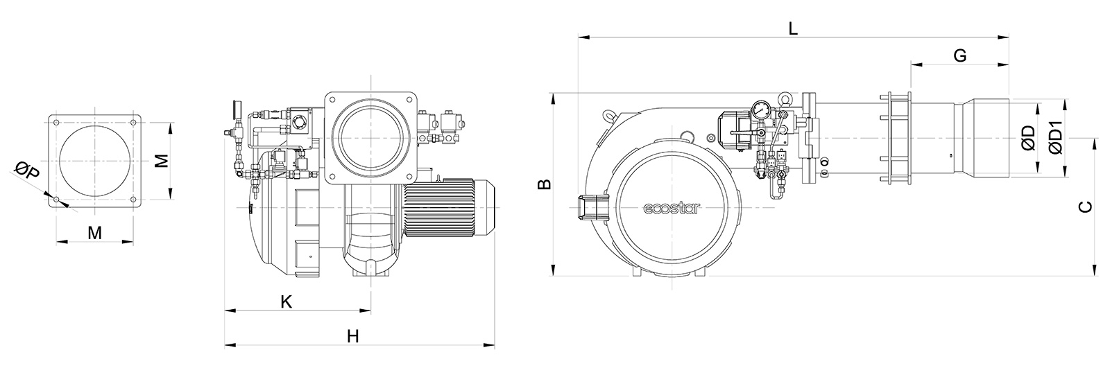 | * | L | Gmin | Gmax | H | K | B | C | ØP | M | ØD | ØD1 |